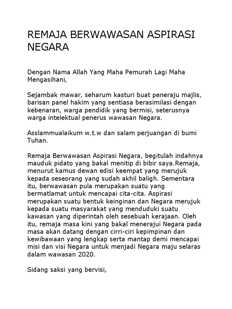Remaja Berwawasan Aspirasi Negara