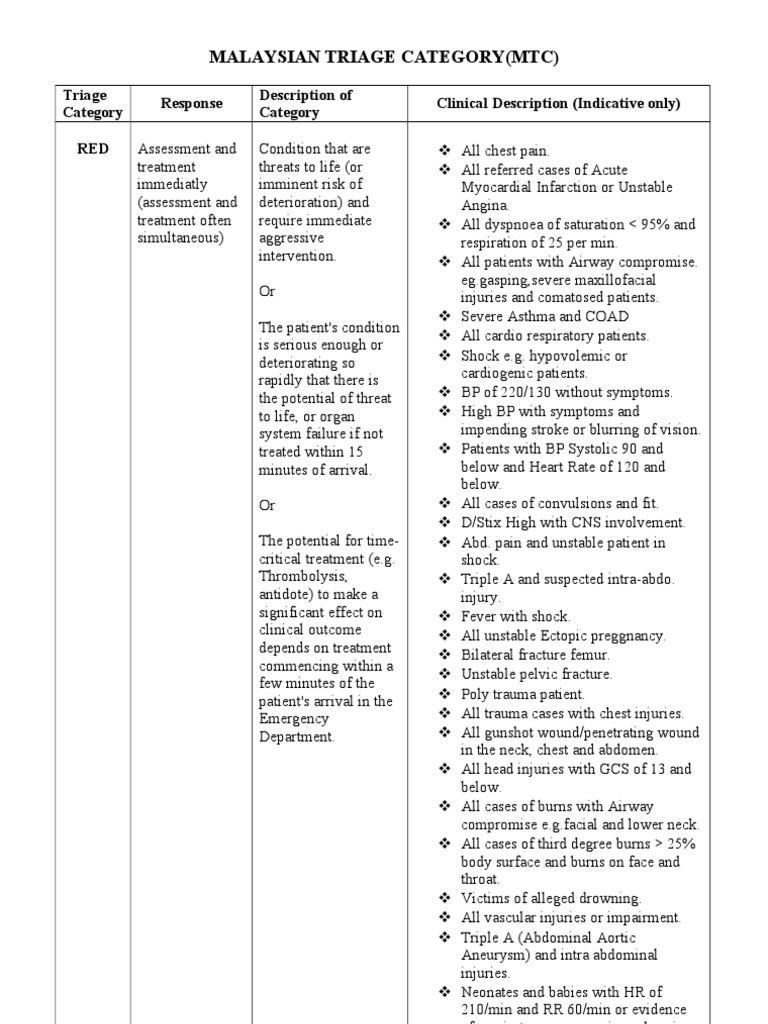 Malaysian Triage Category Emergency Department Shock Circulatory