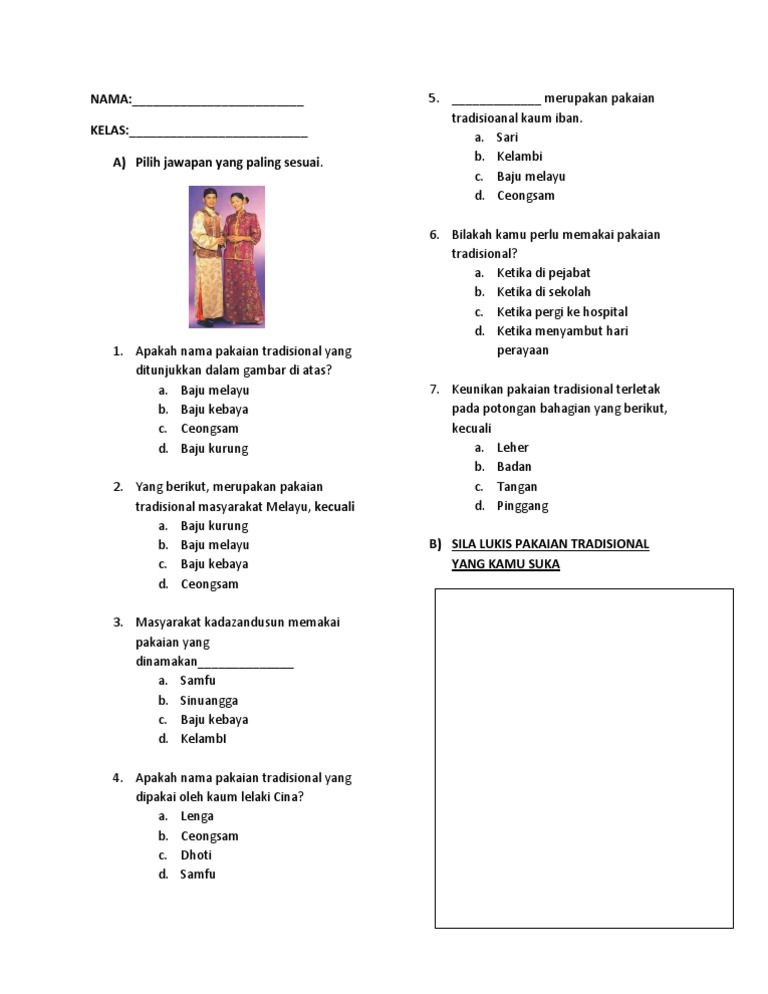 Contoh Soalan Psk Pakaian Tradisional
