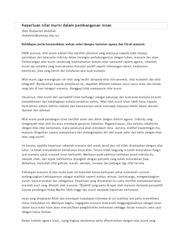 Doc Peranan Dan Pemantapan Nilai Nilai Murni Dalam Membentuk Insan Cemerlang Asudi Hamdun Academia Edu