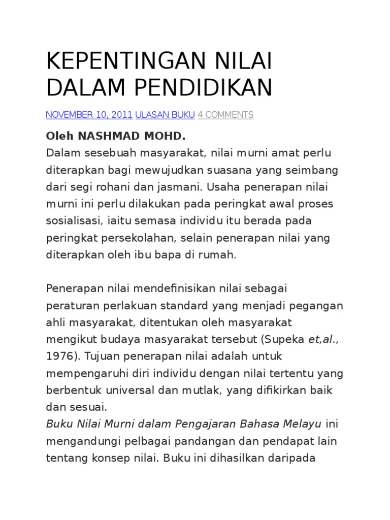 Nilai Nilai Murni Dalam Pendidikan