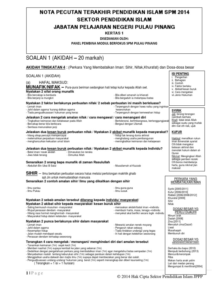 5 Nota Pecutan Terakhir Spm 2014 Bahagian B Soalan 1 Akidah Seaview Pdf