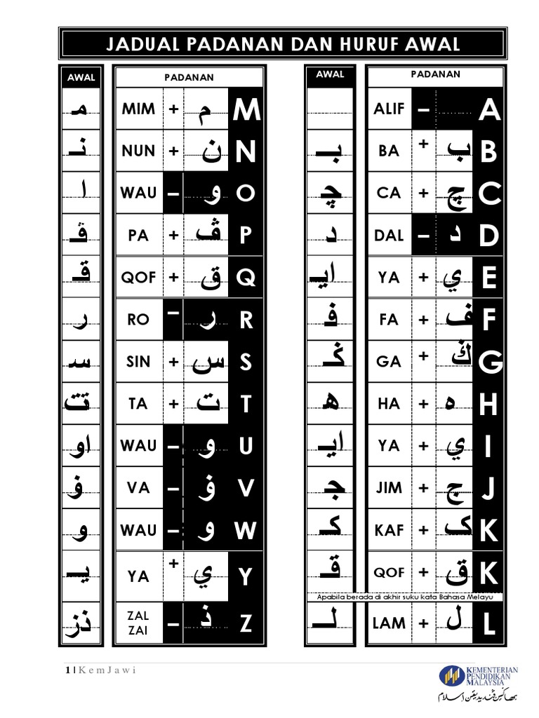 Padanan Huruf Jawi Dan Rumi Polacz W Pary