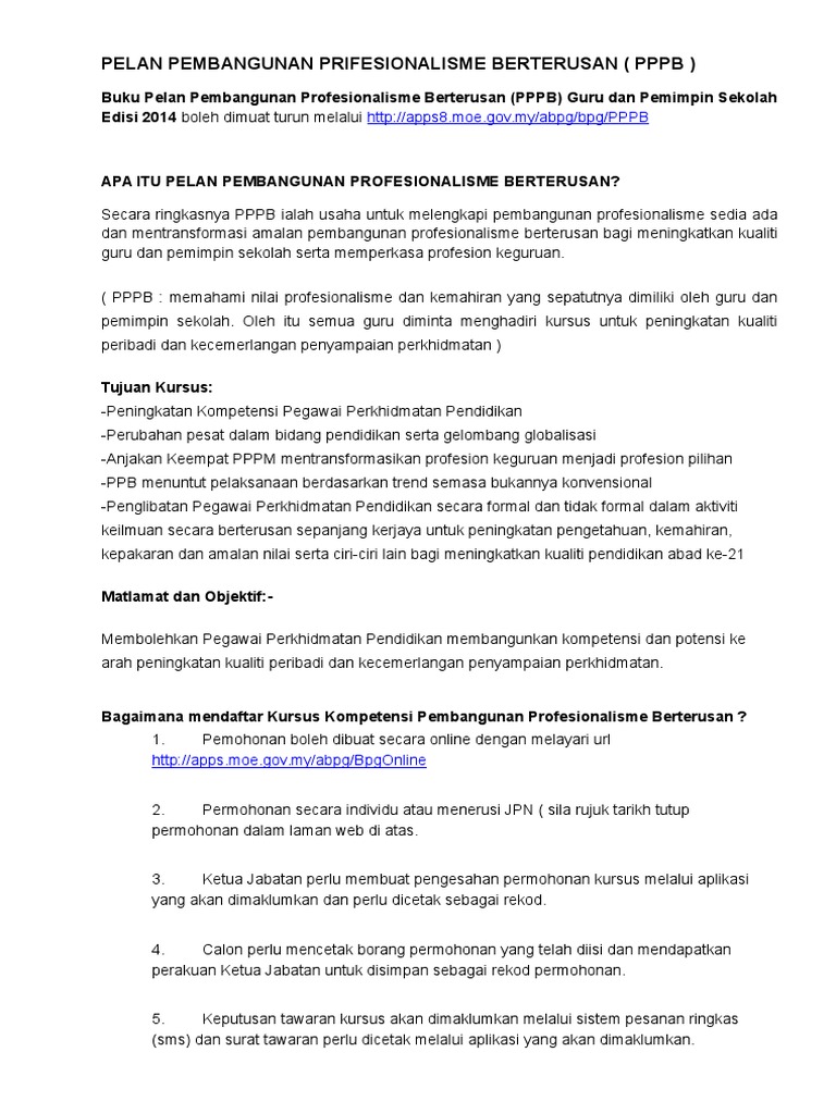 Pelan Pembangunan Profesionalisme Berterusan Pppb Pendidik2u