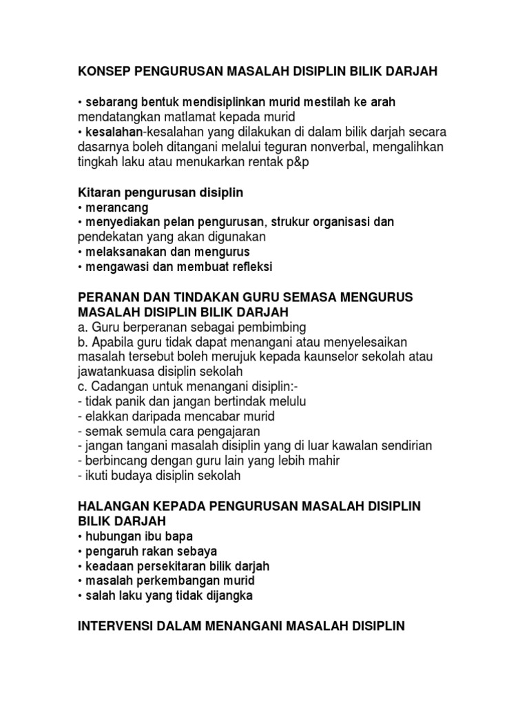 Konsep Pengurusan Masalah Disiplin Bilik Darjah