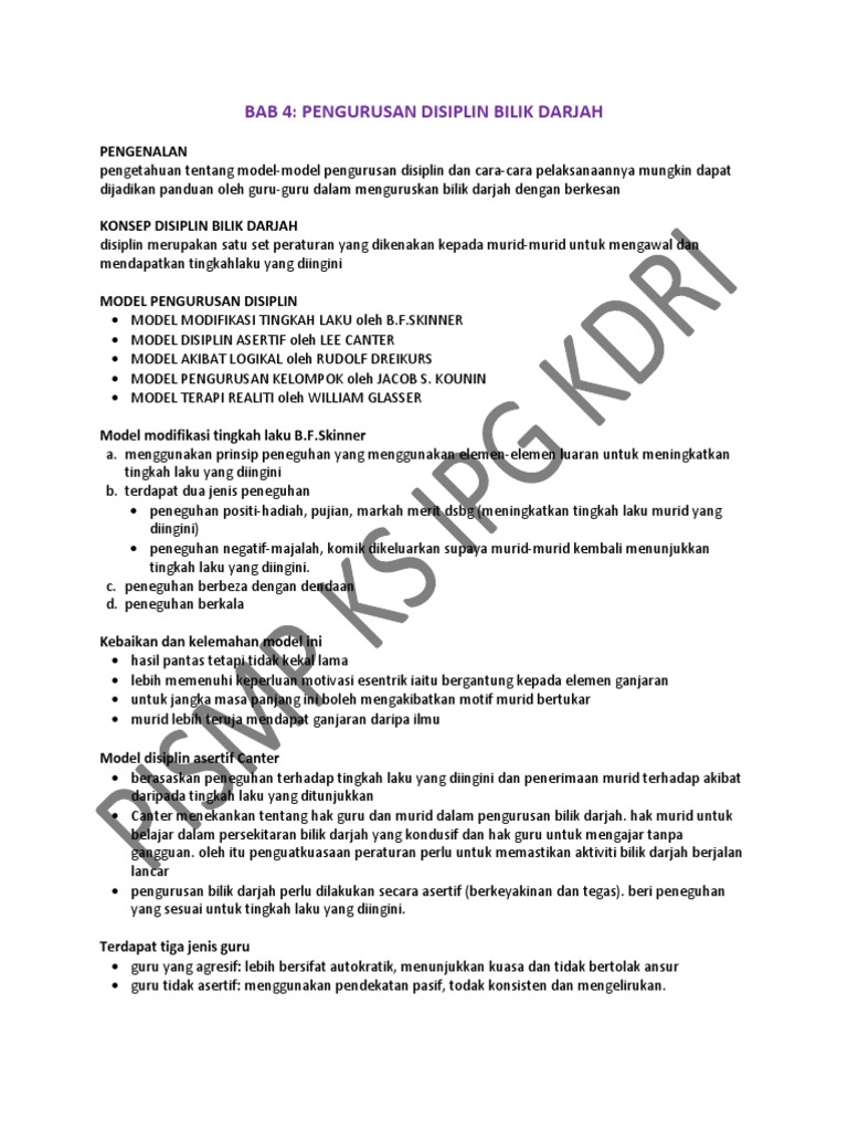 Topik 4 Model Pengurusan Disiplin Bilik Darjah Pptx Pdf Topik 4 Model Pengurusan Disiplin Bilik Darjah Oleh Pn Che Harithun Abdullah Ipgkp Teknik Course Hero