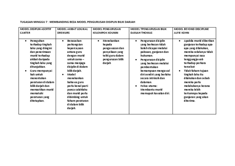 Perbezaan Model Disiplin Dreikurs Dan Kounin Docx Document