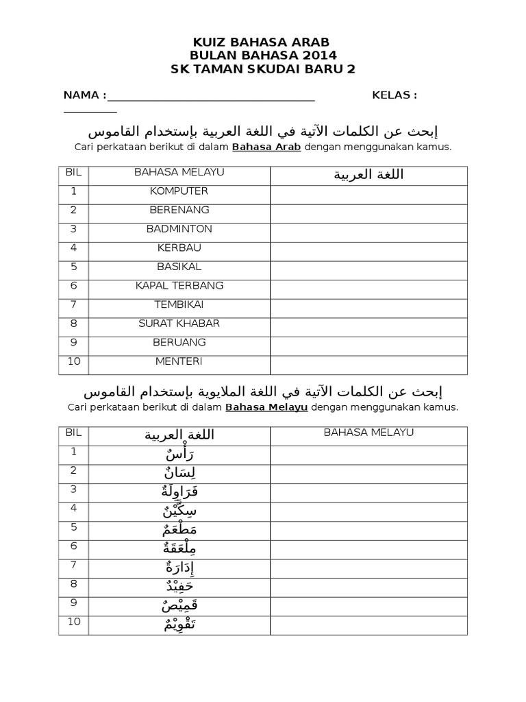 Kuiz Bahasa Arab Bulan Bahasa