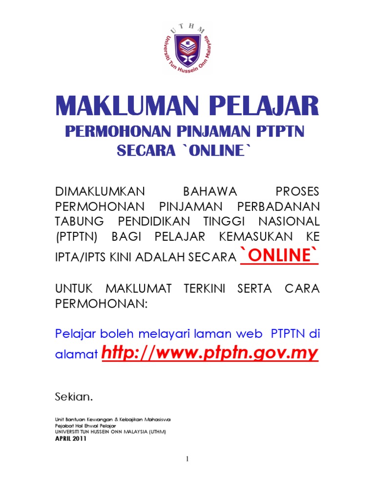 Permohonan Pinjaman Secara Online Ptptn Negeri Sabah Facebook