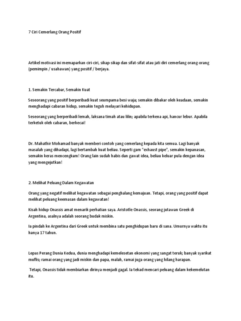 7 Ciri Cemerlang Orang Positif