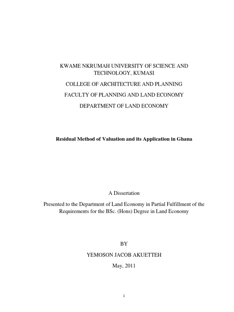 The Residual Method Of Valuation And Its Application In Ghana Real Estate Appraisal Valuation Finance