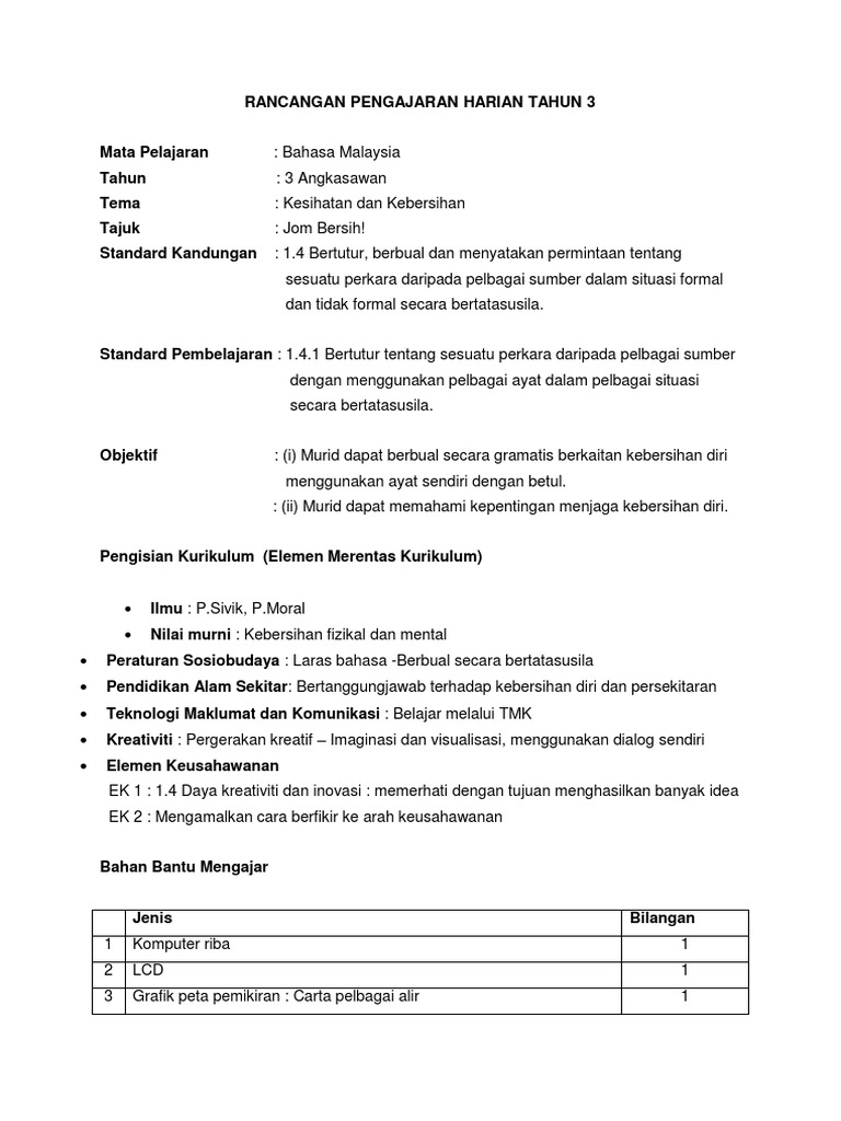 Pdf Rph Tahun 3 Kssr Rancangan Mengajar Tahun 3 Bahasa Malaysia 1 Fauzi Hamat Academia Edu