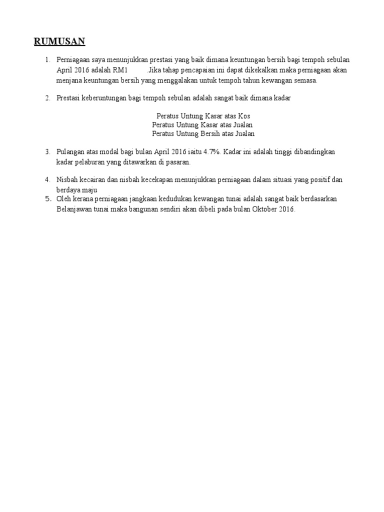 Rumusan Kerja Kursus Akaun