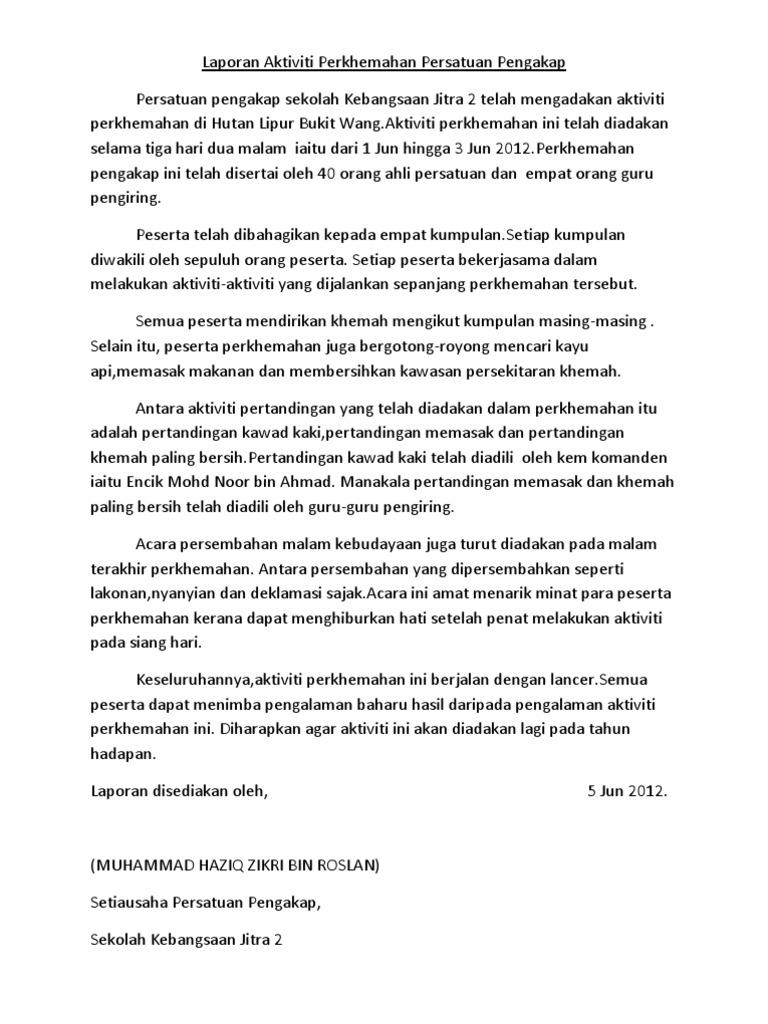 Doc Contoh Penulisan Laporan Tahunan Unit Kokurikulum Fony Nuli Academia Edu
