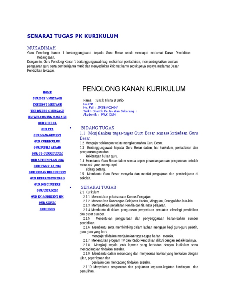 Senarai Tugas Pk Kurikulum