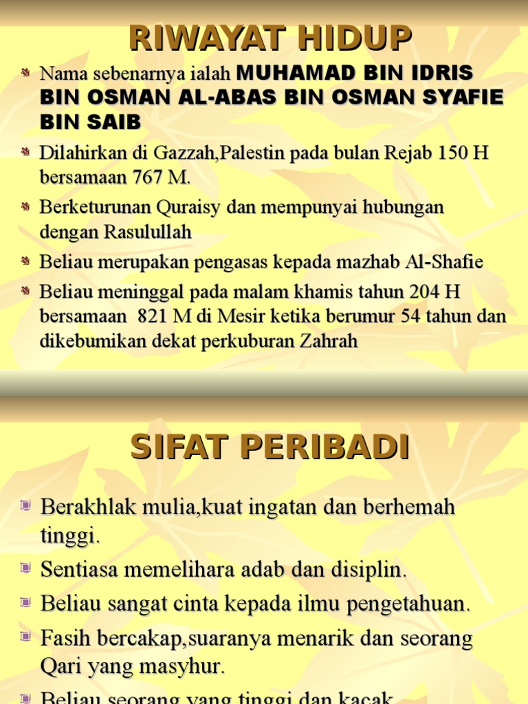 Kolej Vokasional Pasir Mas Tajuk Folio Riwayat Dan Sifat Peribadi Imam Syafie