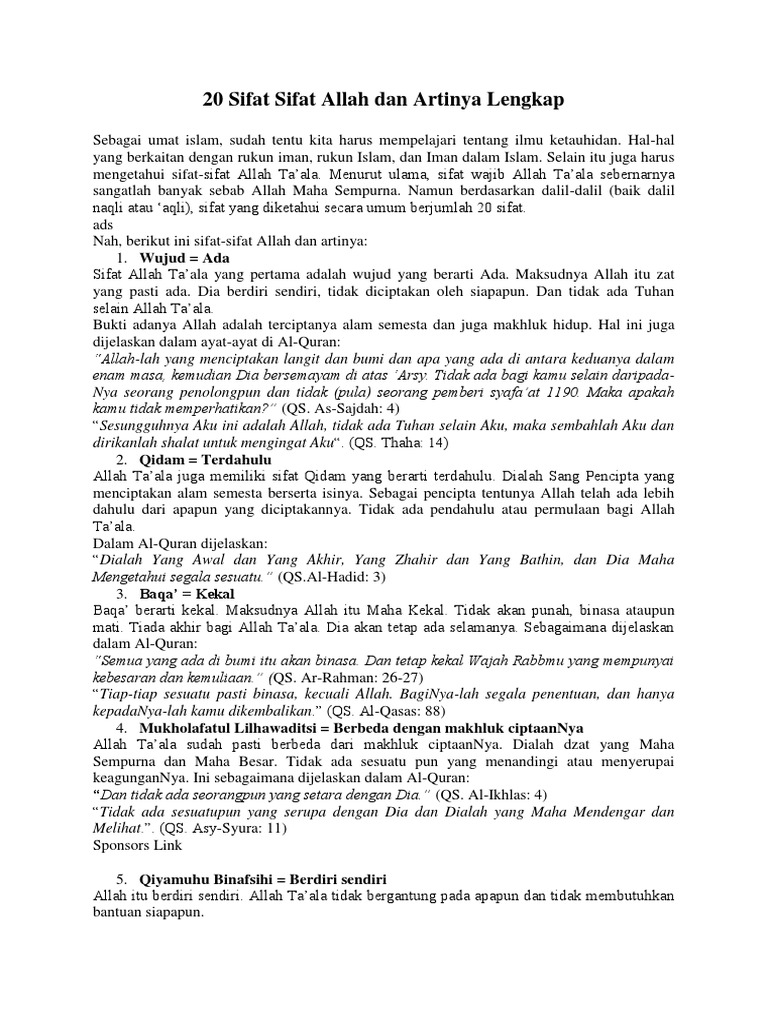 20 Sifat Alloh Yang Harus Diketahui W Y T I N F O