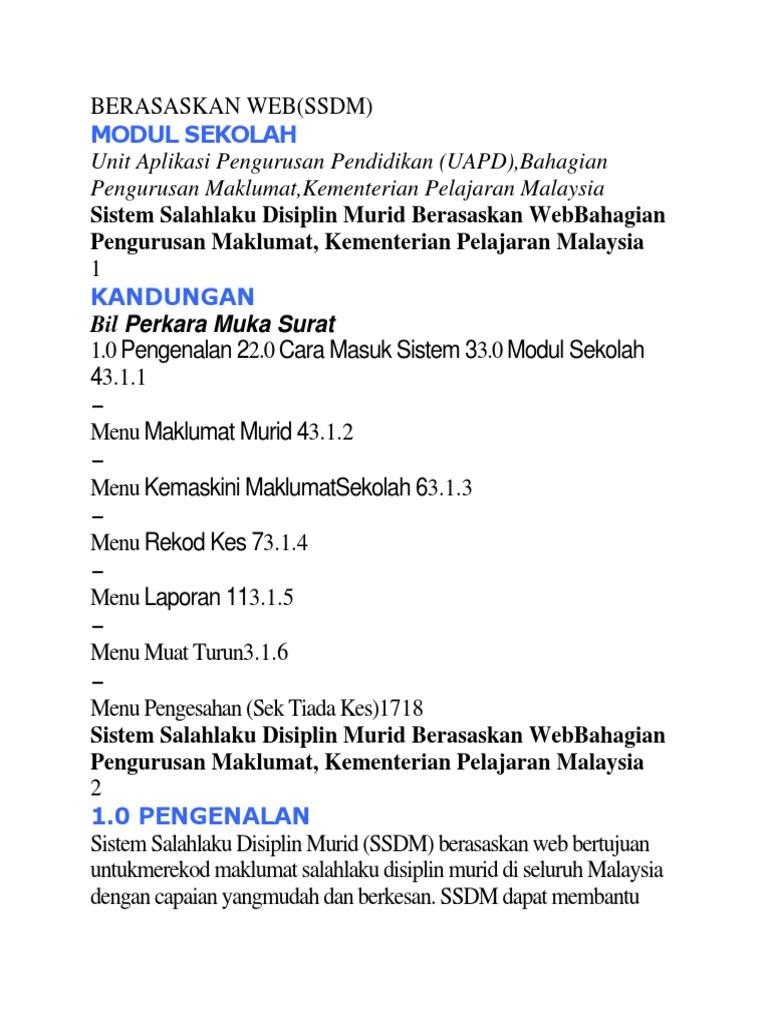 Manual Pengguna Sekolah Ssdm Sistem Salahlaku Disiplin Murid