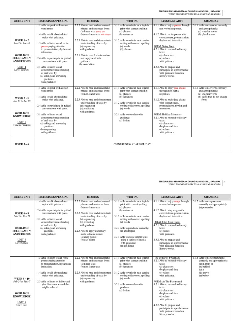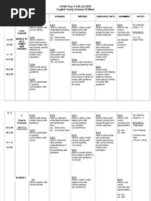 Yearly Scheme Of Work English Year 4 Sjkc 2018 English Language Poetry