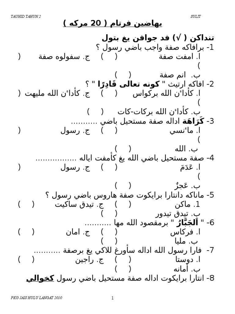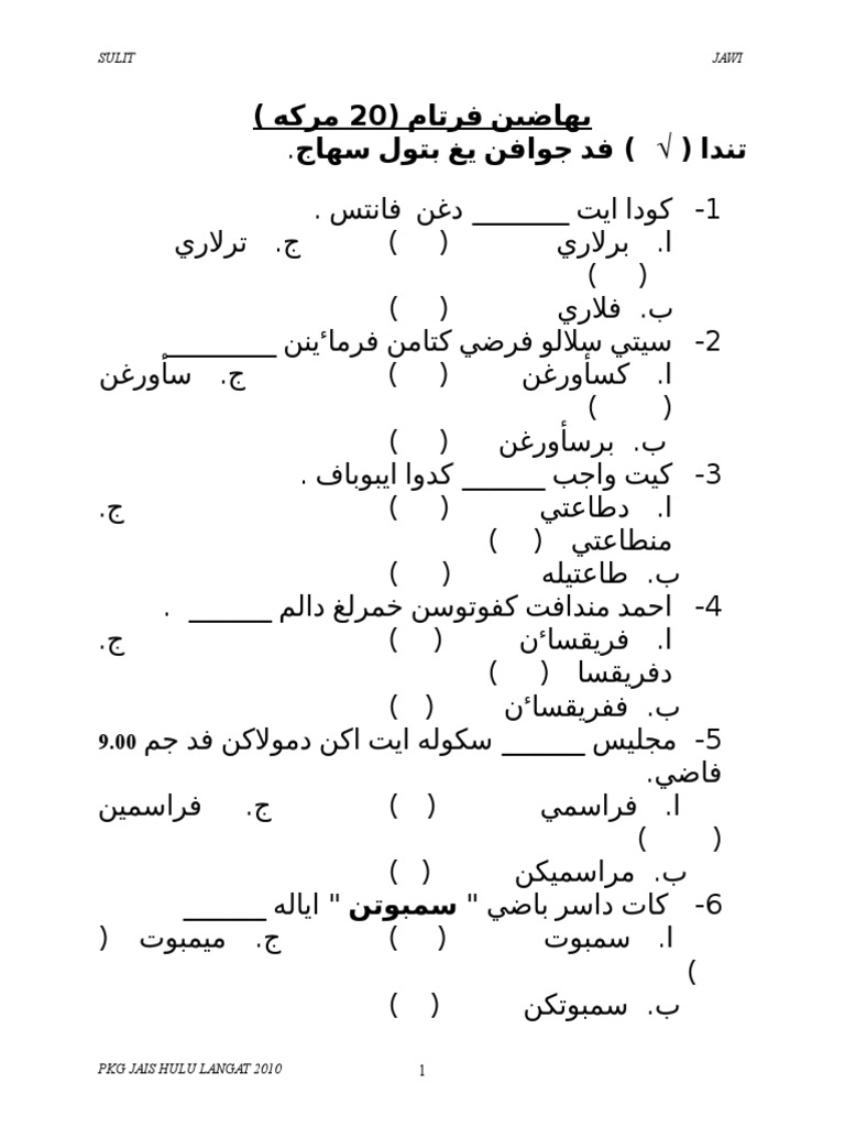 Soalan Akhlak Tahun 1 Jais Selangor H