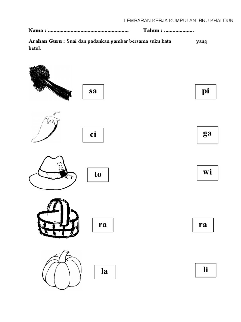 Suku Kata Lembaran Kerja Bahasa Melayu Prasekolah Pdf