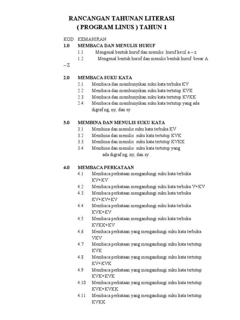Rancangan Tahunan Literasi Program Linus Tahun 1