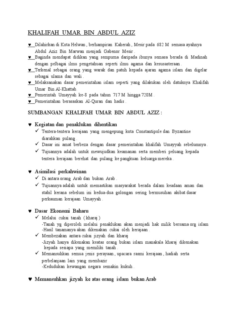 Sumbangan Terbesar Khalifah Umar Bin Abdul Aziz Terhadap Umat Islam Sekarang Adalah A Pembukaan Brainly Co Id