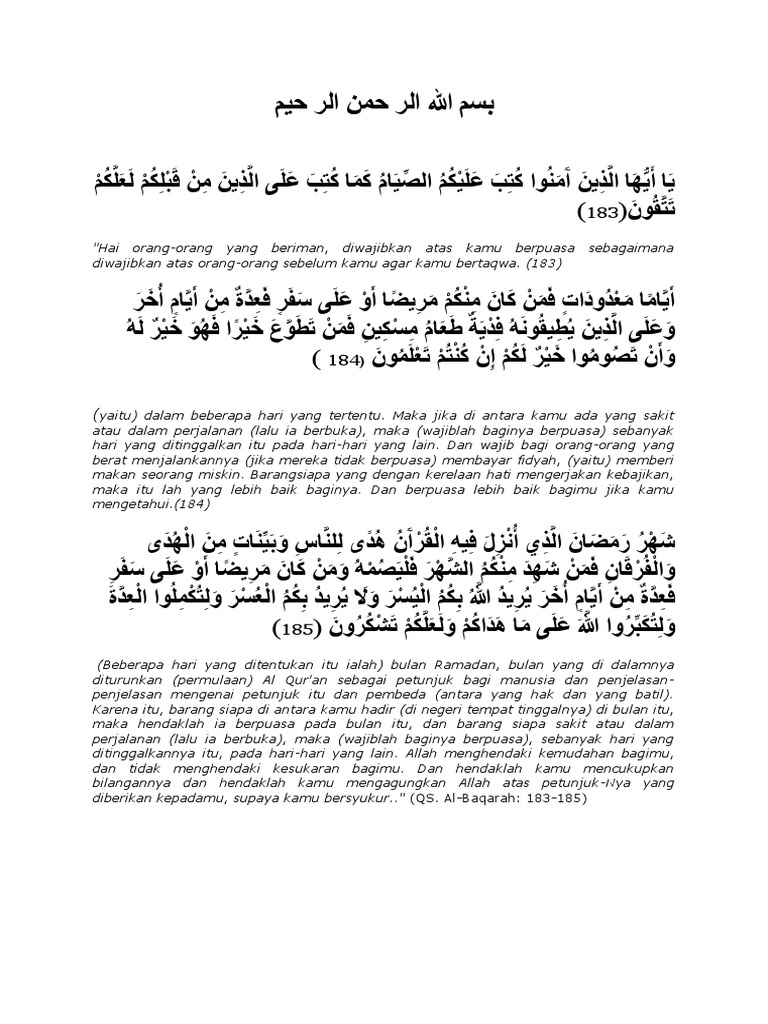 Surah Al Baqarah Ayat 183 185