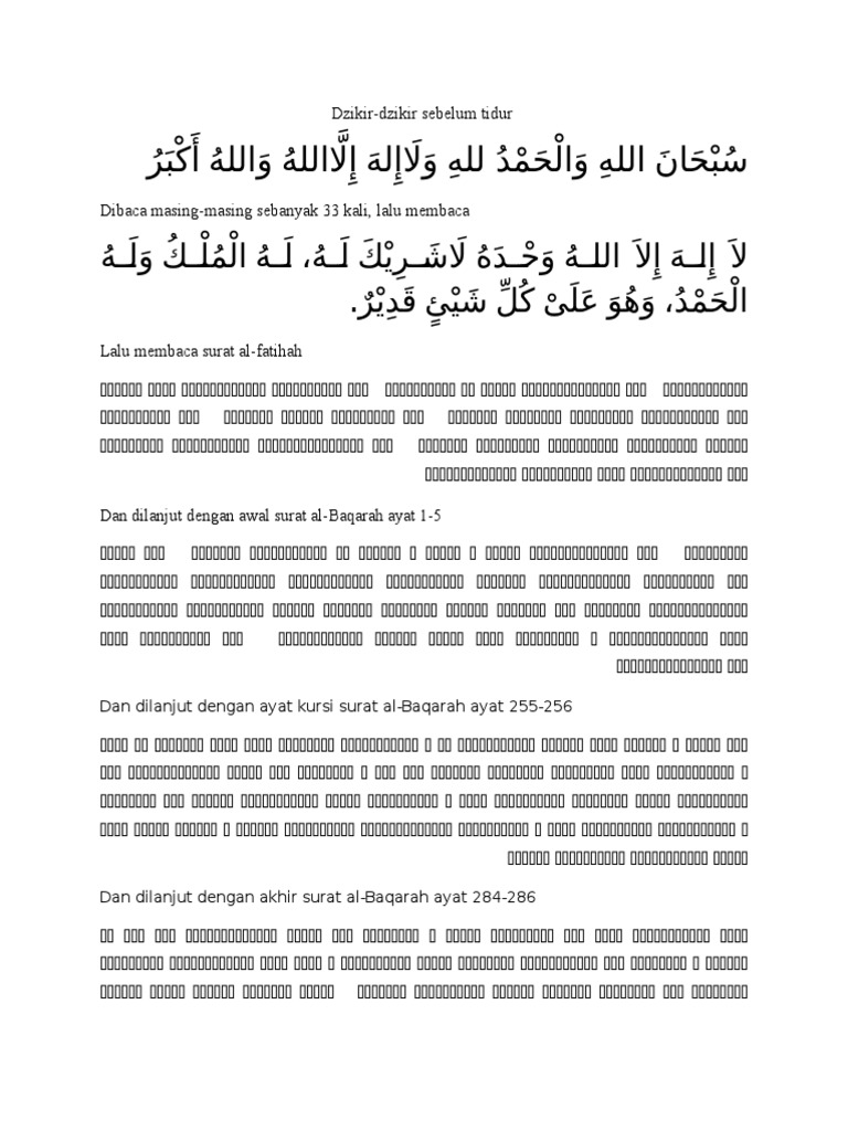 Dzikir Dzikir Sebelum Tidur Dan Dilanjut Dengan Ayat Kursi Surat Al Baqarah Ayat 255 256