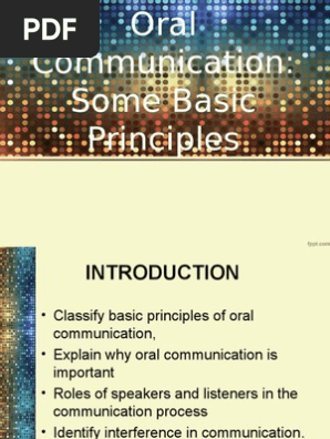 Oral Communication Some Basic Principles Communication Behavioural Sciences