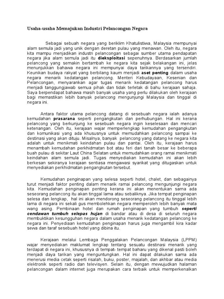 Karangan Bahasa Melayu Usaha Usaha Memajukan Industri Pelancongan Negara